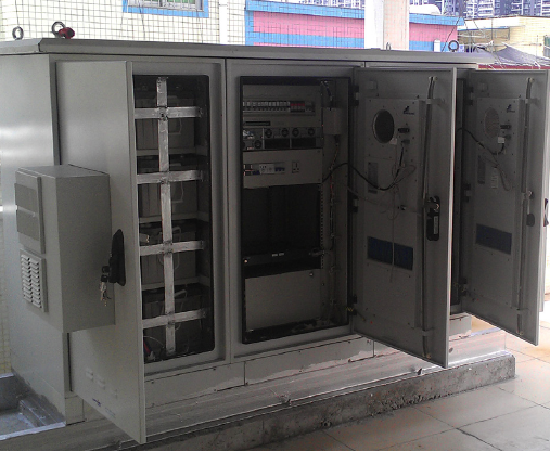 2. 整體結(jié)構(gòu)、防護(hù)設(shè)計(jì) 室外一體化機(jī)柜采用整體式結(jié)構(gòu),吊裝; 防護(hù)等級(jí)IP55; 防潮濕,防霉變,防鹽霧三防處理,能在室外潮濕,高鹽霧的環(huán)境下正常運(yùn)行