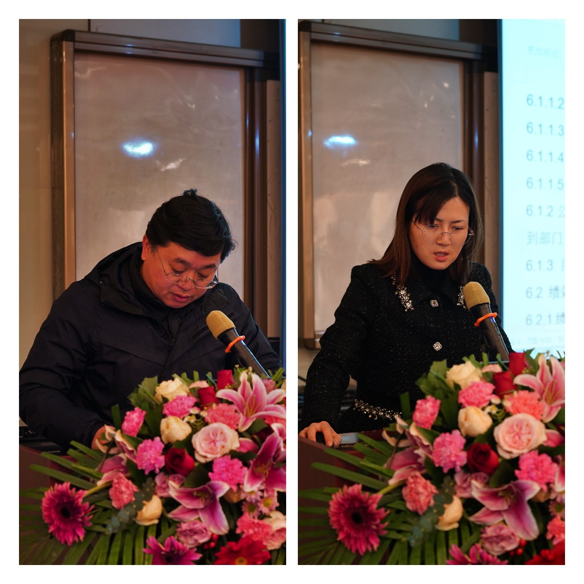 財務(wù)總監(jiān)朱緣、企業(yè)管理中心副總經(jīng)理曹倩分別匯報了《2021年決算及2022年財務(wù)預(yù)算計劃》和優(yōu)化后的《績效管理制度》。