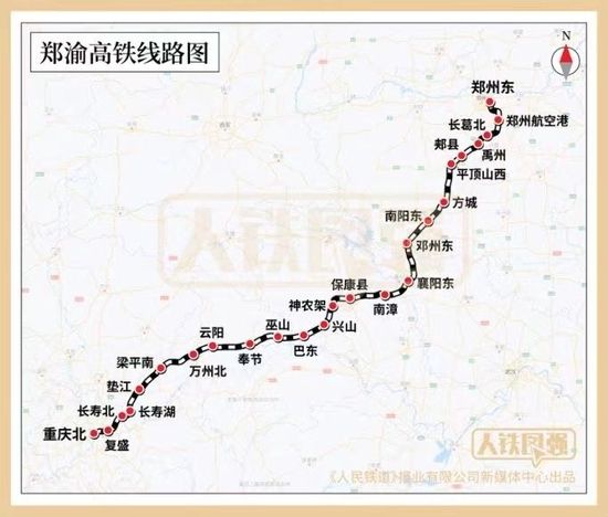 鄭渝高鐵北起河南省鄭州市,南至重慶市,途經(jīng)河南、湖北、重慶三省市,全長1068公里,其中,重慶北至萬州北段、鄭州東至襄陽東段已于2016年和2019年開通。鄭渝高鐵全線開通運營后,重慶至鄭州最快4小時可達,同時大大縮短了重慶到達北京、武漢等城市的時長,有效提升重慶鐵路通道北上、東出能力,有助于發(fā)揮重慶作為一帶一路”和長江經(jīng)濟帶聯(lián)結點的戰(zhàn)略定位。