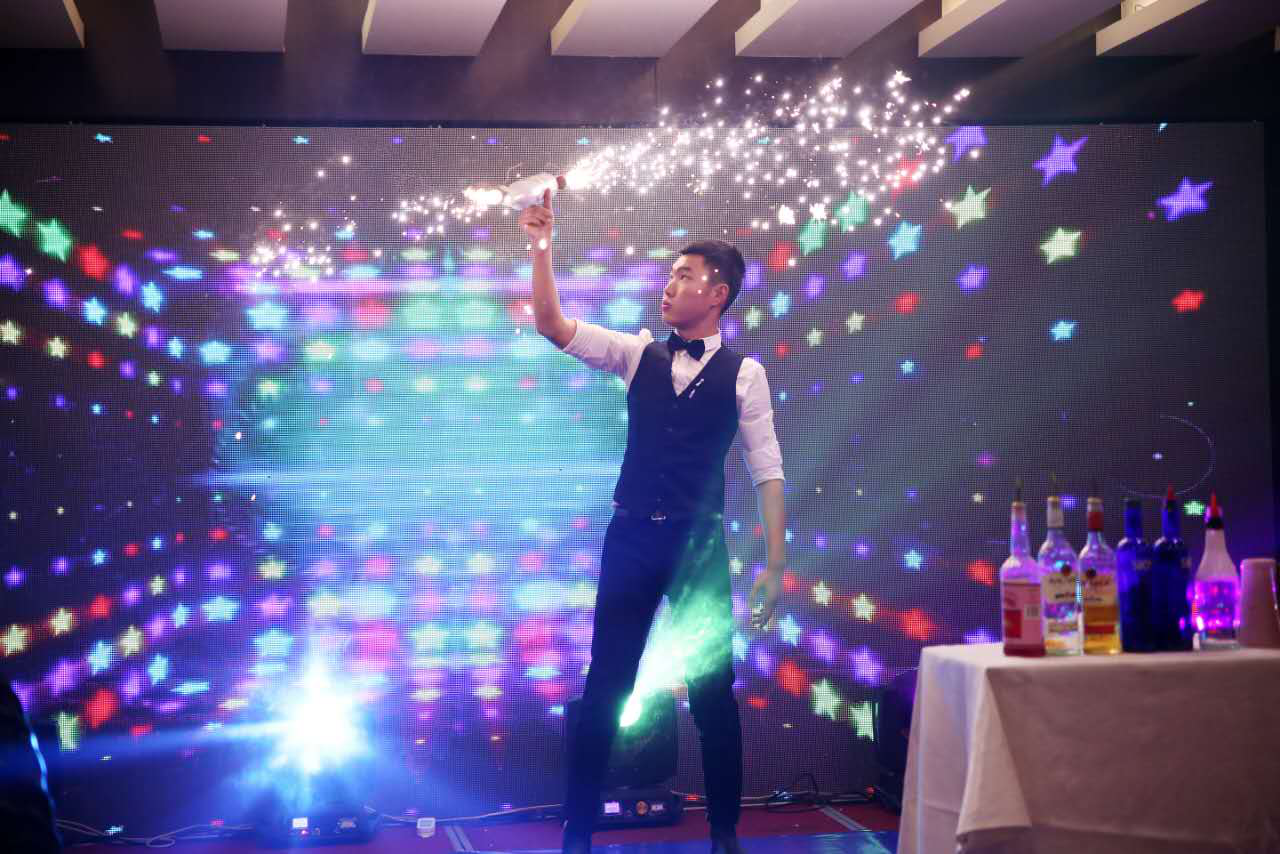 整場晚會由節(jié)目表演和歡樂抽獎交替進行。節(jié)目表演部分形式多樣、精彩紛呈,不僅有專業(yè)的高水平表演團隊加盟,更有員工及家屬傾情演繹:開場節(jié)目《4D激光舞》剛勁有力、時尚魅影、潮流炫動,在黑暗中跳出激情;人體懸浮魔術精彩刺激、扣人心弦;舞蹈“水墨江南”唯美大氣,引人入勝;花式調酒火光十色熱情奔放;銷售公司李雄演唱的《夢中的綠洲》高亢嘹亮,猶如天籟;銷售公司執(zhí)行總監(jiān)張玲的女兒劉玥含小朋友帶來的“寶貝模特秀”,古靈精怪,靈氣逼人;廣州代表處袁鵬宇演繹的街舞青春洋溢、動感十足,歌聲、掌聲、歡呼聲持續(xù)在會場蕩漾。