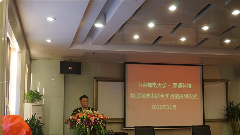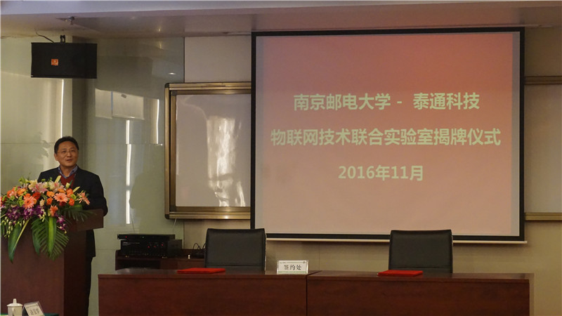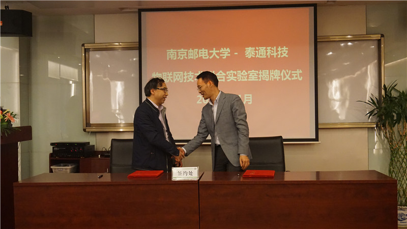 揭牌儀式上泰通科技總工程師陳建平與南京郵電大學通信技術研究所副所長楊龍祥進行了現場簽約,朱校長和吉總共同為“物聯(lián)網聯(lián)合實驗室”揭牌。